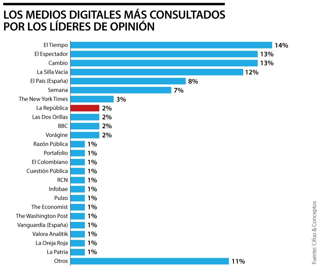 Además, La República se encuentra entre los primeros 10 medios más buscados por los líderes en Colombia para informarse en la web, luego del portal The New York Times.