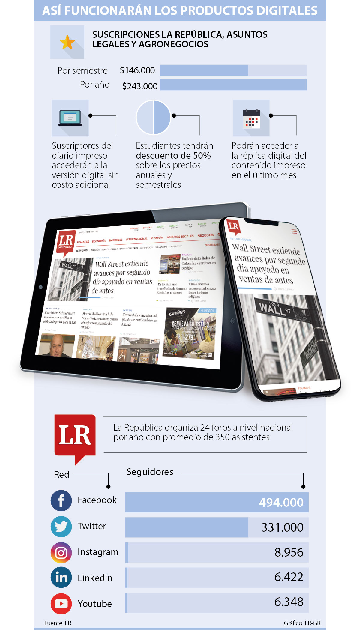 Para aquellos que aún no son suscriptores del diario La República, la suscripción digital tendrá un costo de $146.000 por seis meses y $243.000 por el año.
