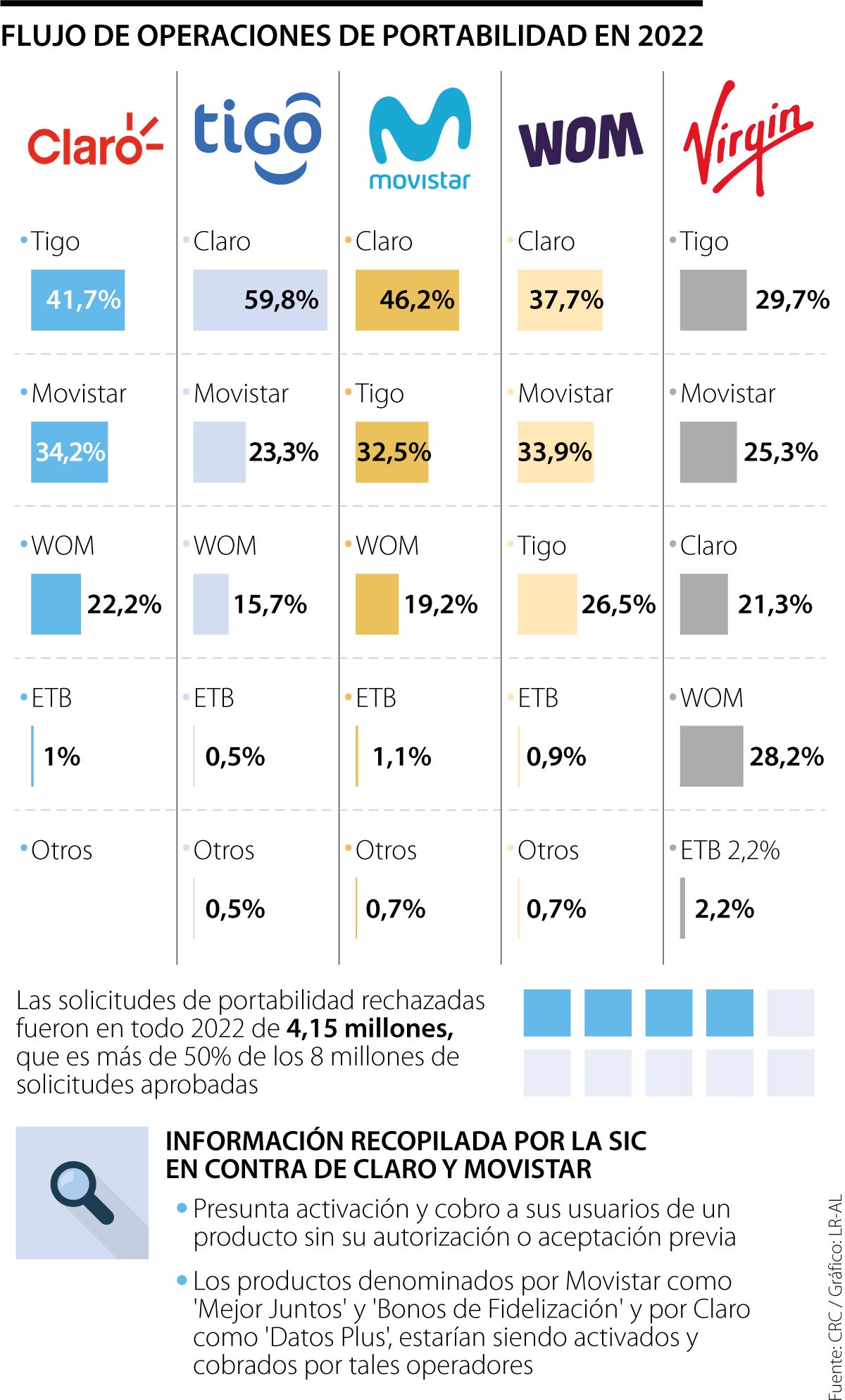 Por ejemplo, de acuerdo con Tigo, la compañía identificó que, “solo en diciembre de 2022, Claro había rechazado 346 intentos de portabilidad que corresponden a 157 clientes de dicha compañía que solicitaron realizar el cambio de 1.521 líneas móviles”.