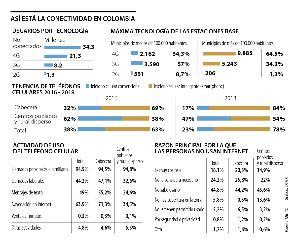 Recientemente, la cartera de tecnología publicó los lineamientos de su ‘Plan de transición a nuevas tecnologías’, que irá hasta 2022 y busca la modernización de las redes de 2G y 3G hacia las tecnologías 4G, esperando que en dos años la cifra de usuarios conectados en esta red pase de 21,3 millones a 27 millones.