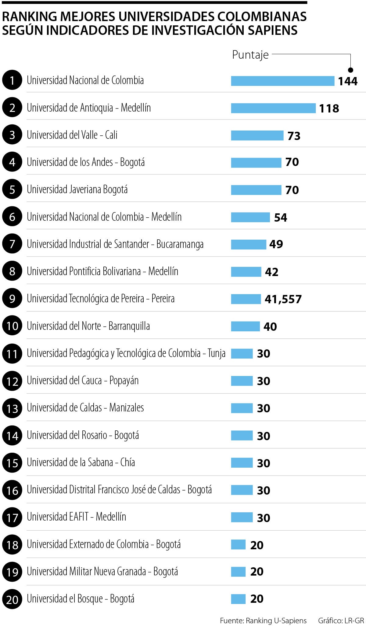 El ranking mide las revistas indexadas, maestrías y doctorados y grupos de investigación.