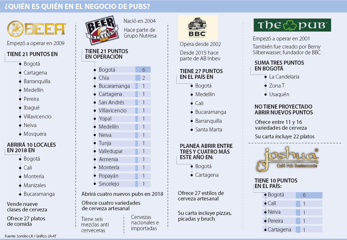 Con la apertura del primer local de The Irish Pub en 2001, Berny Silberwasser trajo a Colombia el concepto de las tradicionales “public houses” irlandesas. Después, Silberwasser fundó la cadena de pubs, Bogotá Beer Company (BBC), y a su llegada, Beer Station, Joshua y Beer también conquistaron a los amantes de la cerveza.