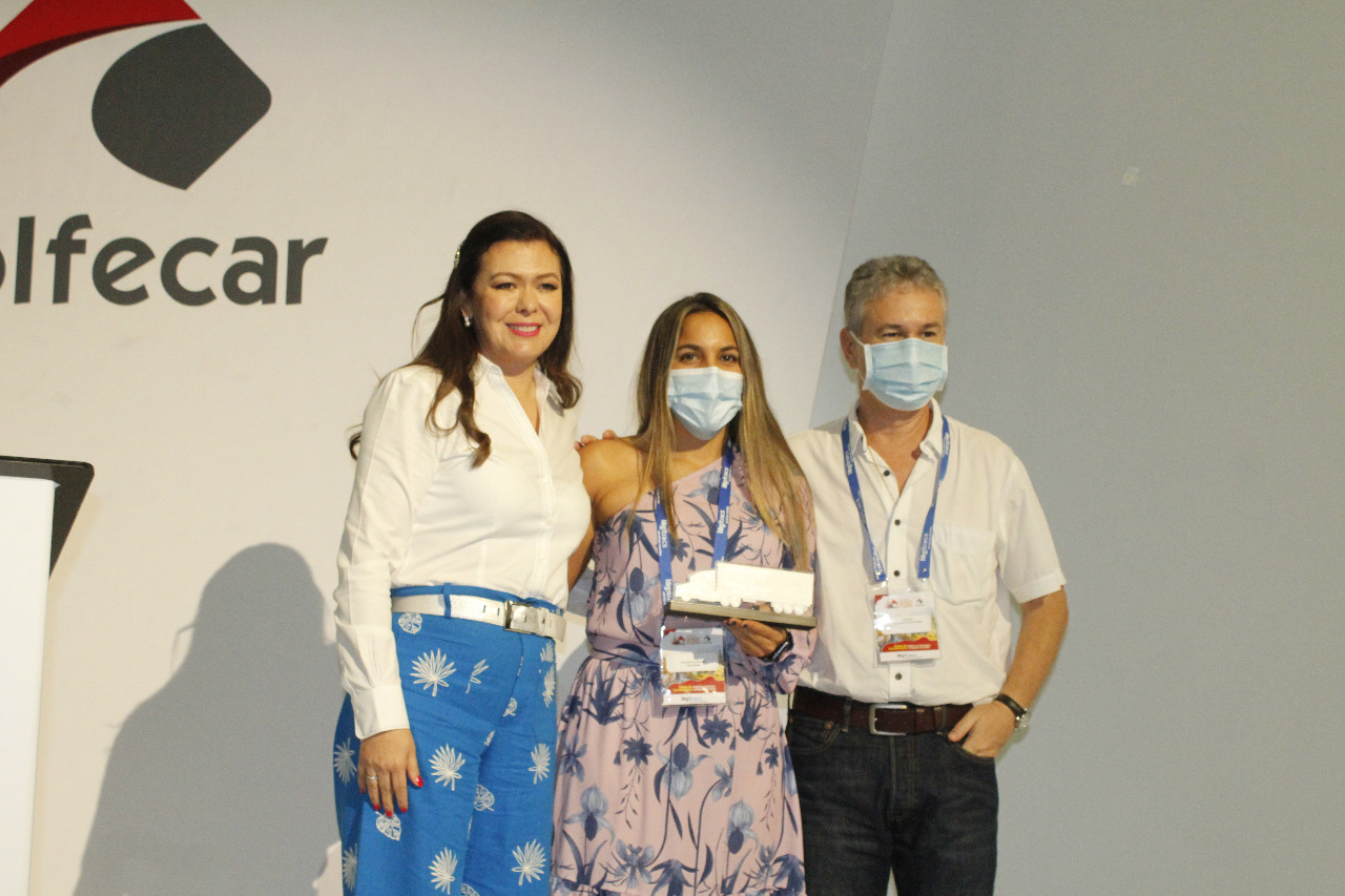 En la categoría de 'Vida y obra' la ganadora fue María Elena Obando, la presidente de Coordinadora mercantil y el premio fue entregado por Nidia Hernández, presidenta ejecutiva y Juan Gonzalo Maya, presidente de la junta directiva de de Colfecar.
