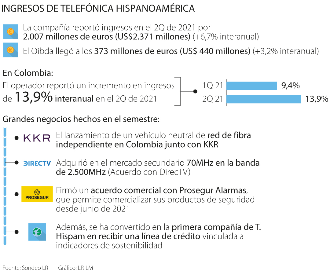 Telefónica Hispanoamérica anunció que la compañía terminó el segundo trimestre del año con ingresos por 2.007 millones de euros (US$2.371 millones), lo que evidenció una variación positiva de 6,7% interanual.
