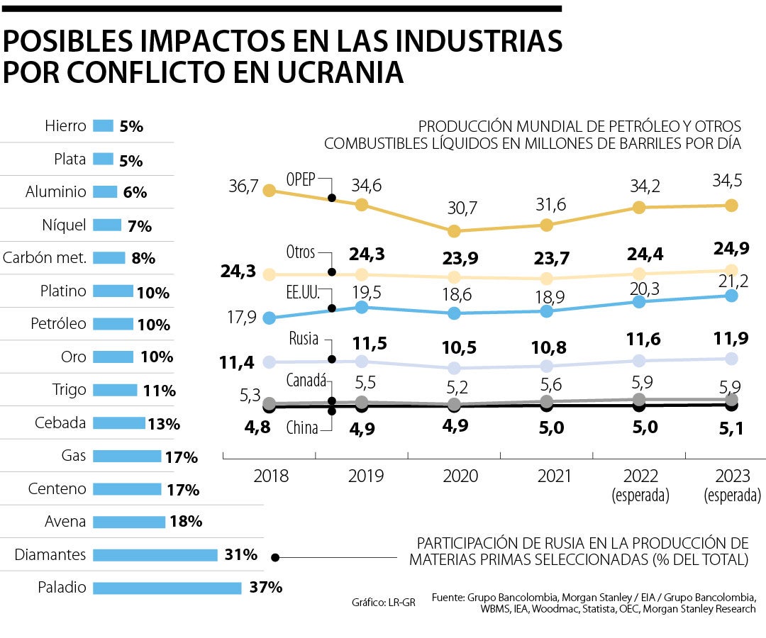 Sin embargo, según un informe del Grupo Bancolombia a raíz del conflicto, y la importancia que tiene Rusia en la producción de algunos elementos esenciales, se podrían generar presiones adicionales en los costos de fabricación que, de materializarse, serían transferidas en buena parte al precio que paga el consumidor final.