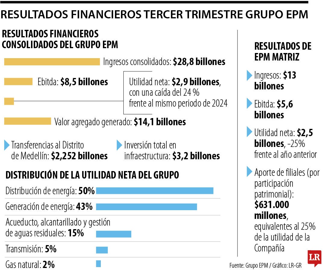 EPM matriz obtuvo ingresos por $13 billones, Ebitda de $5,6 billones y utilidad neta de $2,5 billones. Las filiales y subsidiarias aportaron $631.000 millones