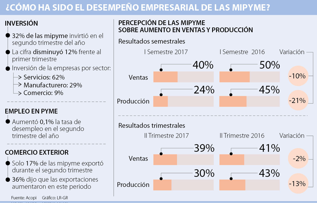 Estos resultados fueron presentados en la Encuesta de Desempeño empresarial de las mipyme, la cual fue realizada por la Asociación Colombiana de las Micro, Pequeñas y Medianas Empresas (Acopi).