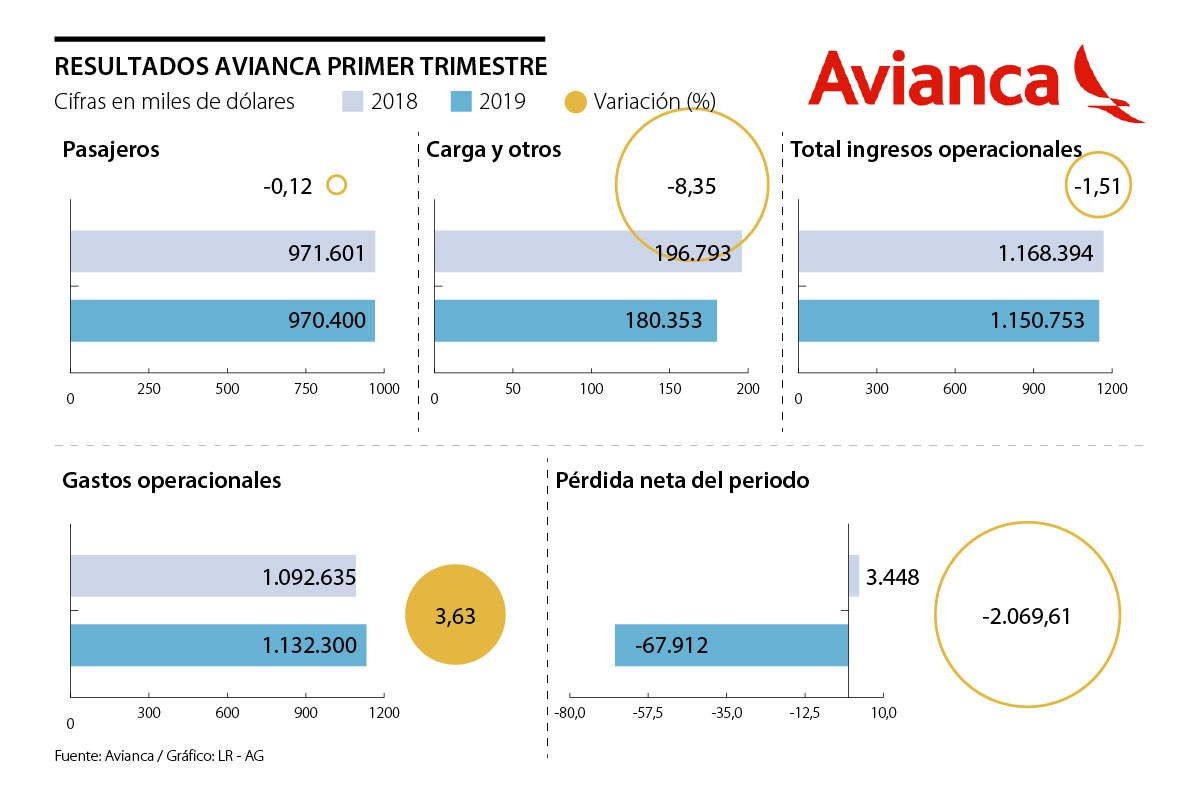 Esta ejecución del plan ha llevado a que Avianca ajuste algunas proyecciones de sus indicadores para 2019 como el Ebitda que se ubicó en 1,6% durante el primer trimestre del año. “La utilidad operacional del primer trimestre se ubicó en US$18 millones”.