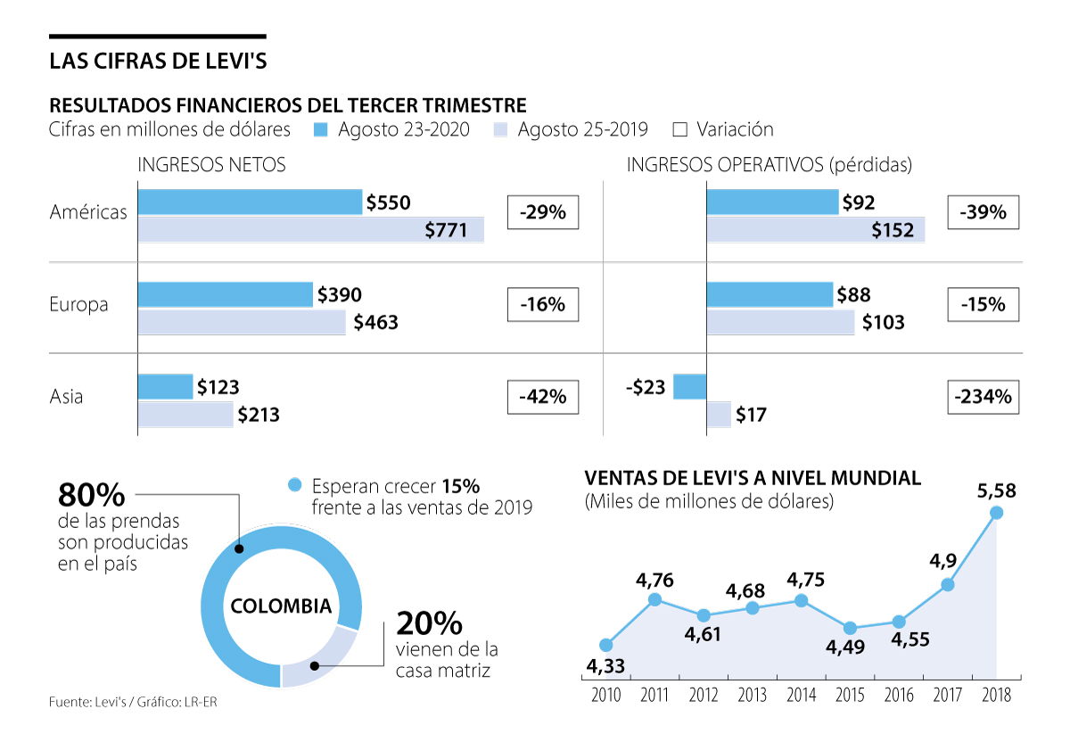 Sobre la operación colombiana Juliana Restrepo, gerente de marca de Levi’s, aseguró que “esperamos cerrar el año con un crecimiento de 15%, contra las ventas del año pasado”, y agregó que con su “plataforma de comercio electrónico hemos llegado a usuarios nuevos, que conocían nuestra marca, pero que no la compraban en tiendas de línea o centros comerciales”.