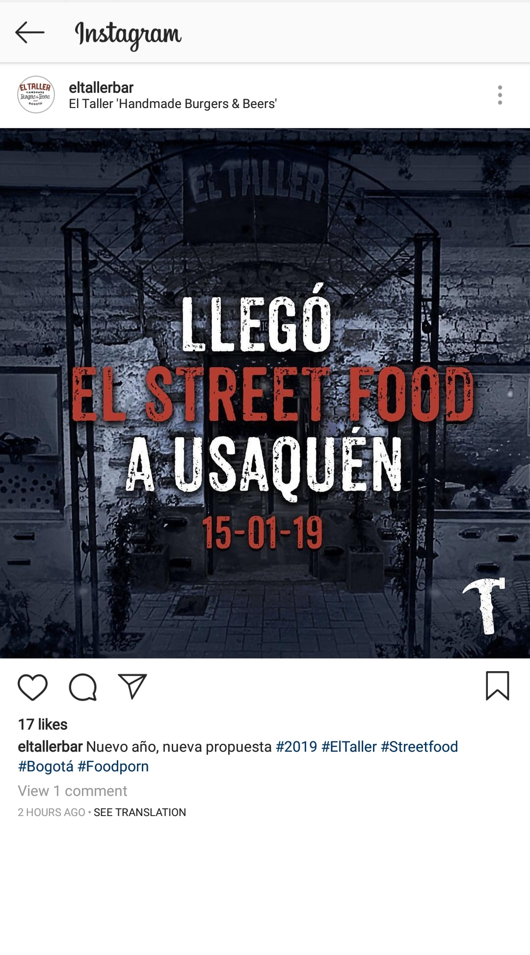A través de de su cuenta oficial de Instagram, El Taller Bar informó que el 15 de enero de 2019 llegará una cita esperada por los 'foodies' en Usaquen: El Street Food.