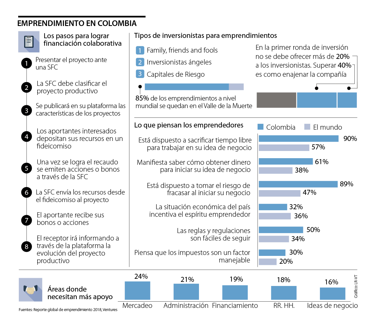 Además de estos primeros inversores, Fonseca explicó que “hay inversionistas ángeles, que son para una etapa más madura del emprendimiento, pero no son tan formales e invierten a través de figuras como las notas convertibles. Posteriormente, se encuentran los venture capitals o capitales de riesgo, que son más formales, miran el ejercicio de valoración de las acciones, exigen más requisitos en cuanto a organización y ganancias de las compañías, pero usualmente no invierten más de 20%, pues no les interesa tomar el control de las empresas”.