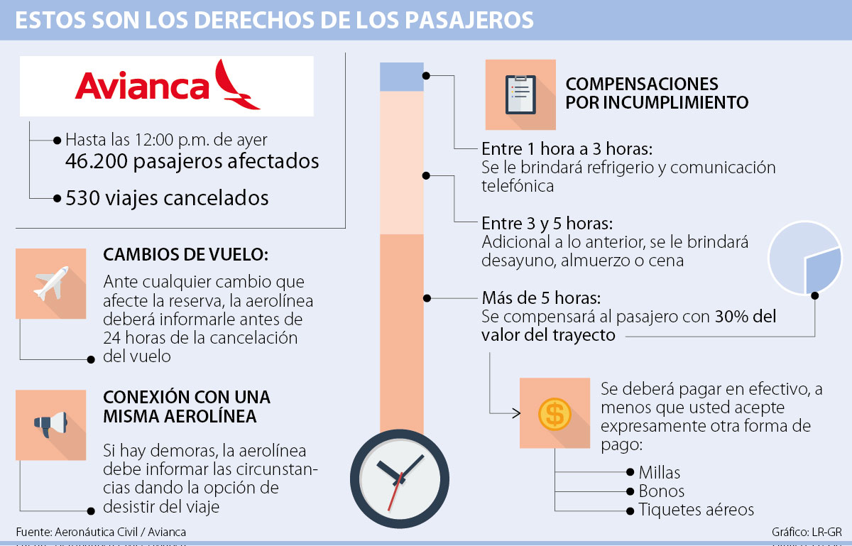 El conflicto entre Avianca y los pilotos adscritos a la Asociación de Aviadores Civiles Colombianos (Acdac) no solo ha puesto bajo la lupa los más de 46.000 usuarios afectados hasta el momento, sino también los derechos y deberes que tienen los pasajeros a la hora de tomar su vuelo en cualquier plataforma aeroportuaria.
