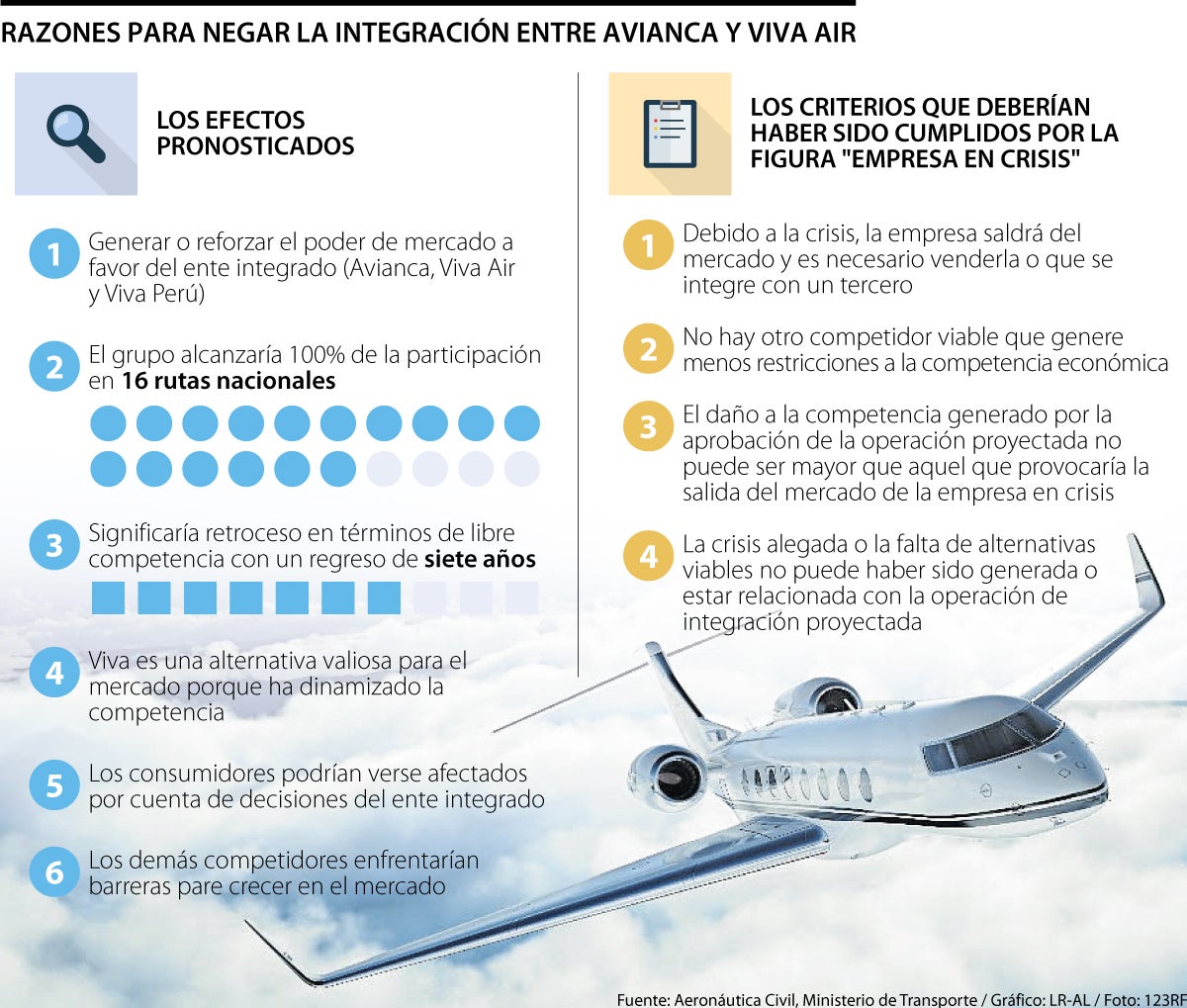Este martes se reveló la decisión de la Aeronáutica Civil y el Ministerio de Transporte respecto a la solicitud de integración de Avianca y Viva Air, una decisión que mantenía en vilo al sector. Dicha petición fue objetada por las entidades, sustentada en diferentes argumentos: desde afectaciones a la libre competencia, al mercado y los consumidores, hasta la falta de pruebas para la figura de “excepción de empresa en crisis”, a la que recurrieron.