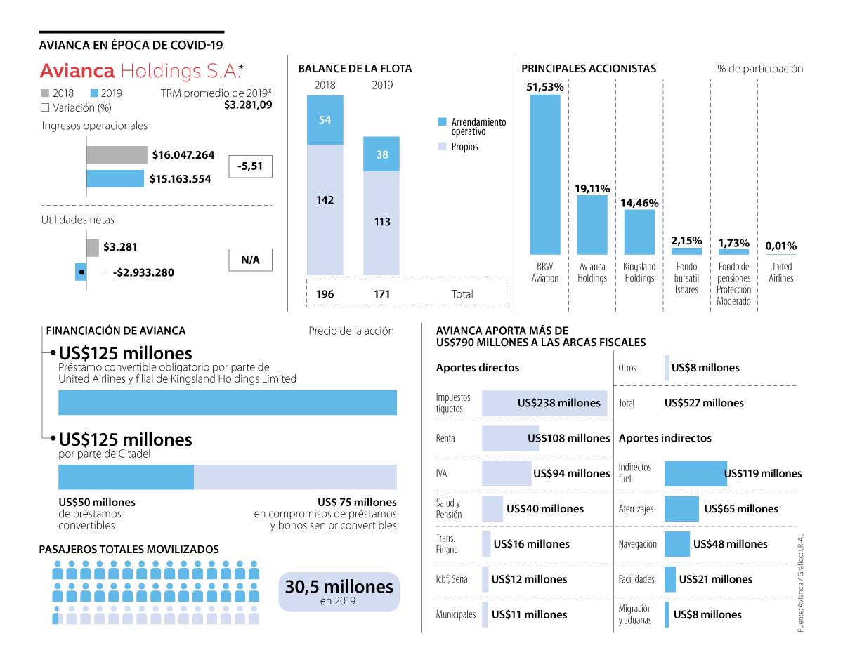Carlos Rodríguez, gerente de renta variable de Ultraserfinco, indicó a LR que para que el Gobierno invierta o dé un crédito a Avianca, esta debe hacer una reestructuración de la deuda porque “en este momento sería una inversión de alto riesgo”.