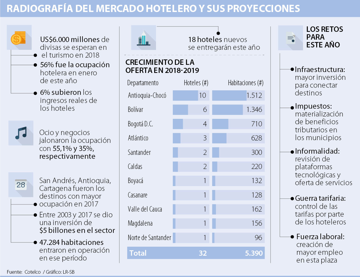 Pese a que de 2003 a 2017 se construyeron 47.284 habitaciones bajo una exención tributaria que generó una reconfiguración del mercado hotelero en el país, los empresarios en este sector aseguran que 2018 es el año para ajustar algunas tareas pendientes. La creación de un Ministerio de Turismo, la formalización de plataformas como Airbnb y la reconversión de destinos, son tres de los principales retos que se vislumbran en la industria.