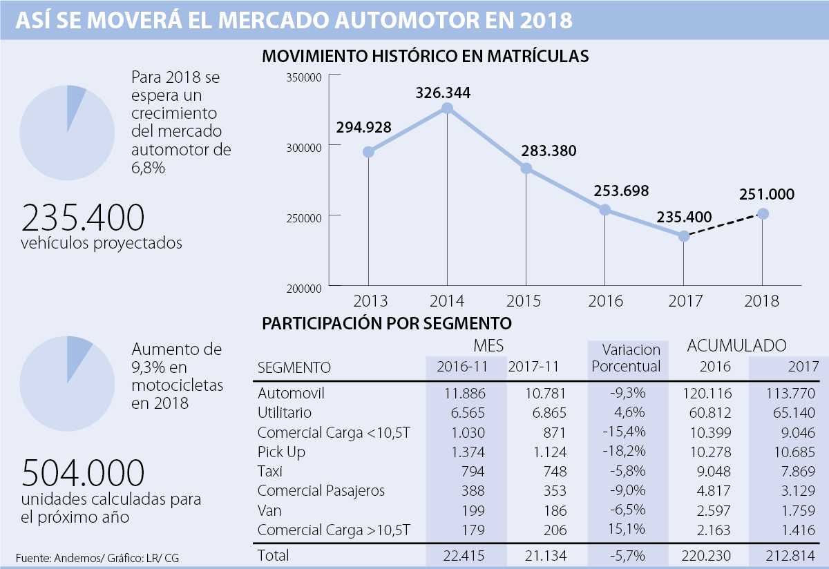 No obstante, ante esta posición del gremio es importante resaltar que días atrás Ricardo Salazar, presidente de Los Coches, habló con LR sobre las proyecciones de mercado para 2018. En ese momento, Salazar recordó que si bien 2017 no fue un buen año para las marcas, el próximo podría ser un año de transición mientras algunos jugadores ajustan su estrategia para crecer.