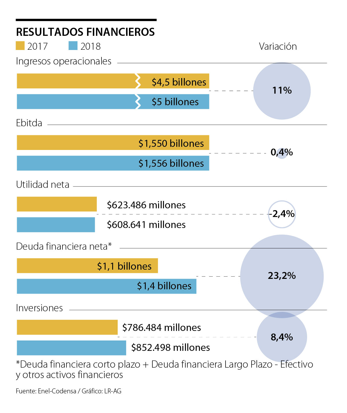 Con un crecimiento de 11% en ingresos operacionales, Enel-Codensa presentó el martes pasado su cierre financiero de 2018, el cual muestra que la compañía pasó de ingresar $4,5 billones en 2017 a $5 billones el año pasado.