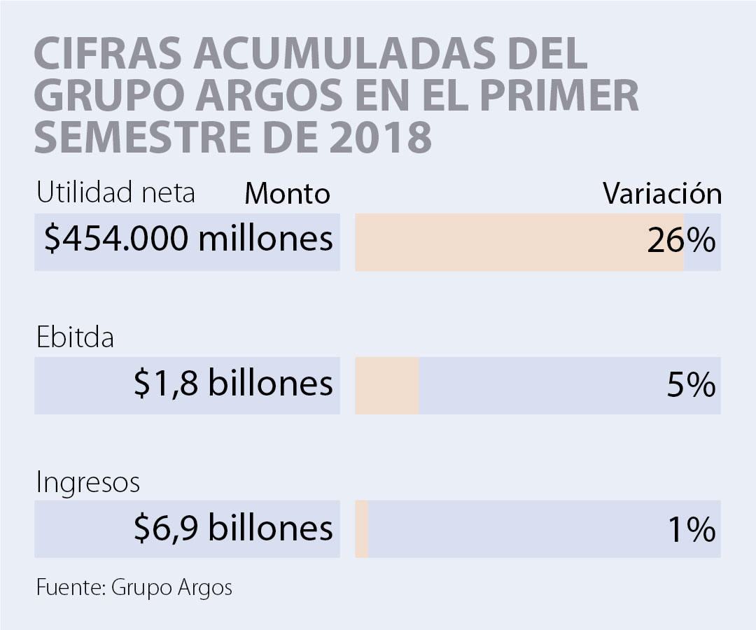 El Grupo Argos finalizó el primer semestre de 2018 con un crecimiento de sus ingresos de apenas 1%. Las ventas acumuladas de la compañía sumaron $6,92 billones, una cifra levemente superior a los $6,22billones que alcanzó en el mismo período de 2017. En cuanto a los ingresos del segundo trimestre, la suma ascendió a $3,6 billones.