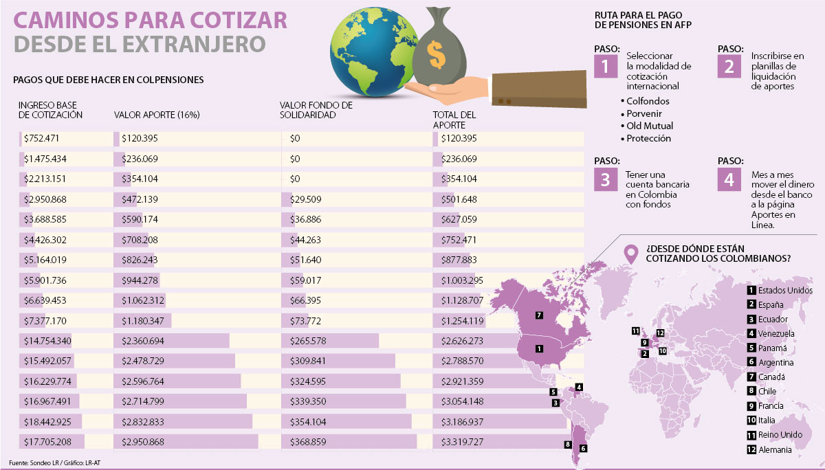 Mientras el grueso de los colombianos que residen en el país trabajan para lograr su pensión, hay por lo menos unas 500.000 personas que se han dedicado a hacer lo mismo pero en el extranjero. El número podría ser mayor, sin embargo, por desconocimiento son varios los que dejan de cotizar.