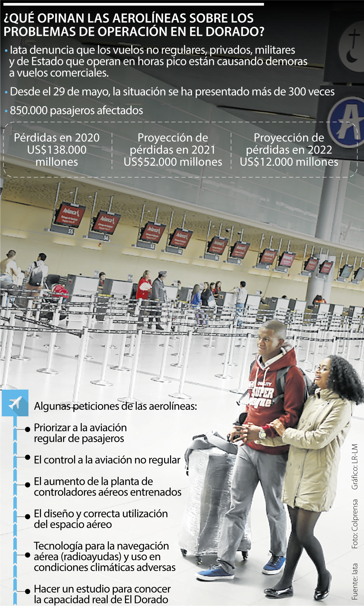 A inicio de octubre, el presidente de la Asociación Internacional de Transporte Aéreo (Iata) en Colombia, Andrés Uribe, instó al Ministerio de Transporte y a la Aeronáutica Civil a aliviar los problemas operacionales del Aeropuerto Internacional El Dorado.
