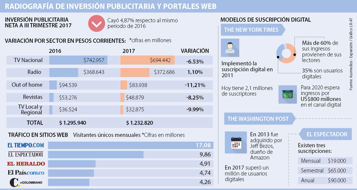 Esta apuesta de los diarios se explicaría por la caída de las inversiones en pauta publicitaria, así como en circulación, que hoy los lleva a buscar nuevos modelos de financiación. La experiencia de The New York Times hoy deja ver que 60% de sus ingresos proviene de lectores, mientras que 35% de esa mayoría se concentra en suscripciones a web.