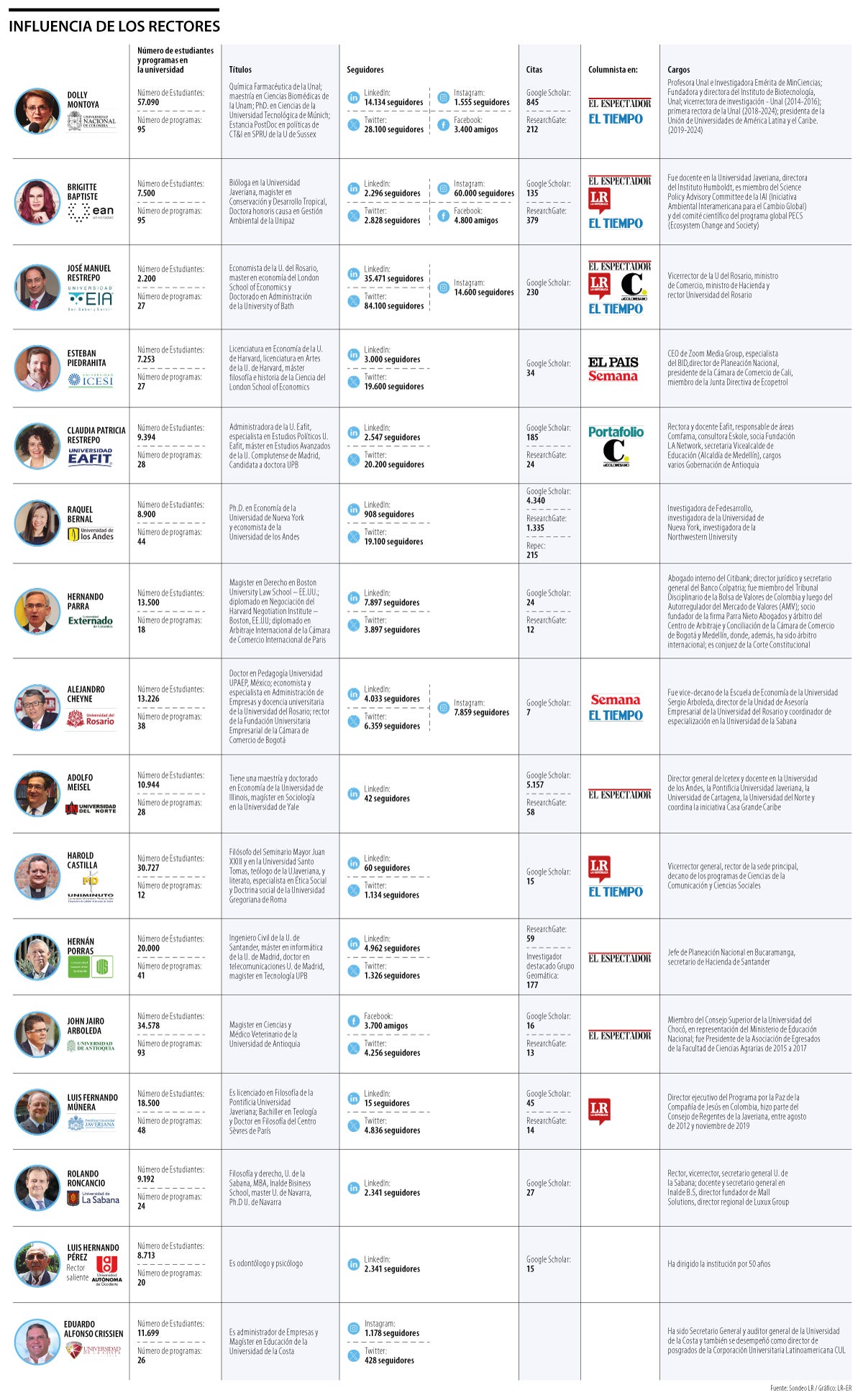 Y como él mismo dijo, “la influencia nace en las universidades”, por eso LR revisó los perfiles de los rectores de las instituciones de educación superior colombianas.