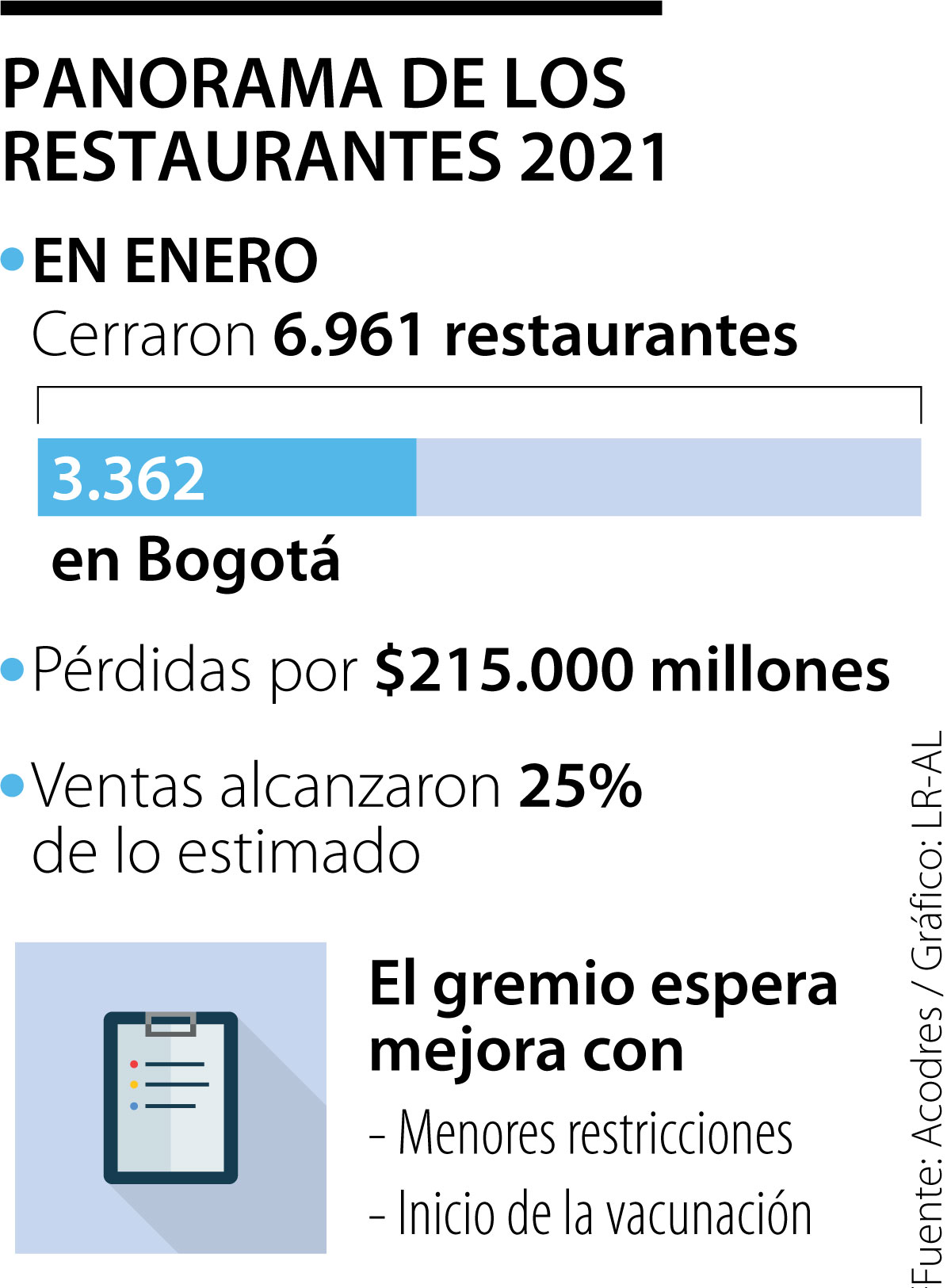 En enero, las múltiples restricciones de movilidad para contener la pandemia dejaron fuertemente afectados a los restaurantes del país. Según precisa la Asociación Colombiana de la Industria Gastronómica (Acodres), las pérdidas habrían superado los $215.000 millones.