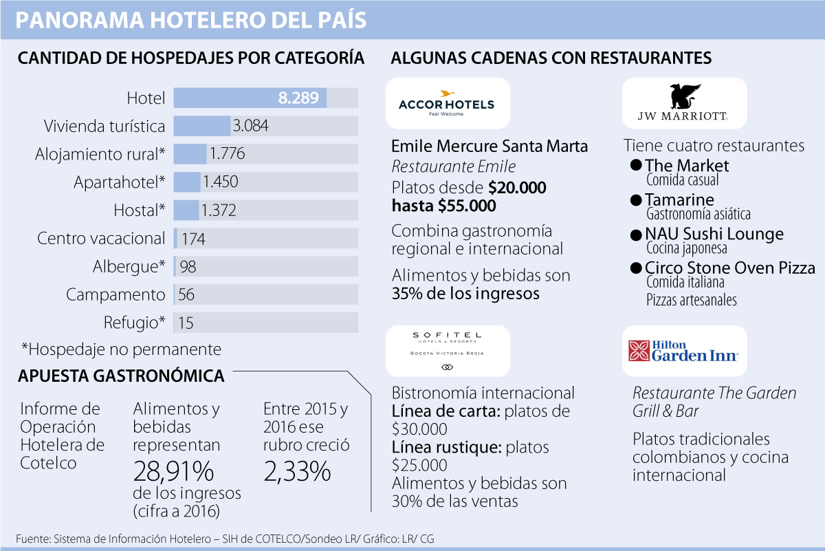 Cadenas como AccorHotels, Marriott y Hilton no han ahorrado esfuerzos en estructurar propuestas gastronómicas de mayor alcance. Carolina López, gerente de alimentos y bebidas del Sofitel Victoria Regia, explicó que “la gran ventaja competitiva de los hoteles es su horario porque están abiertos desde las 6:30 a.m., y en nuestro caso, hasta las 11:00 p.m.”.