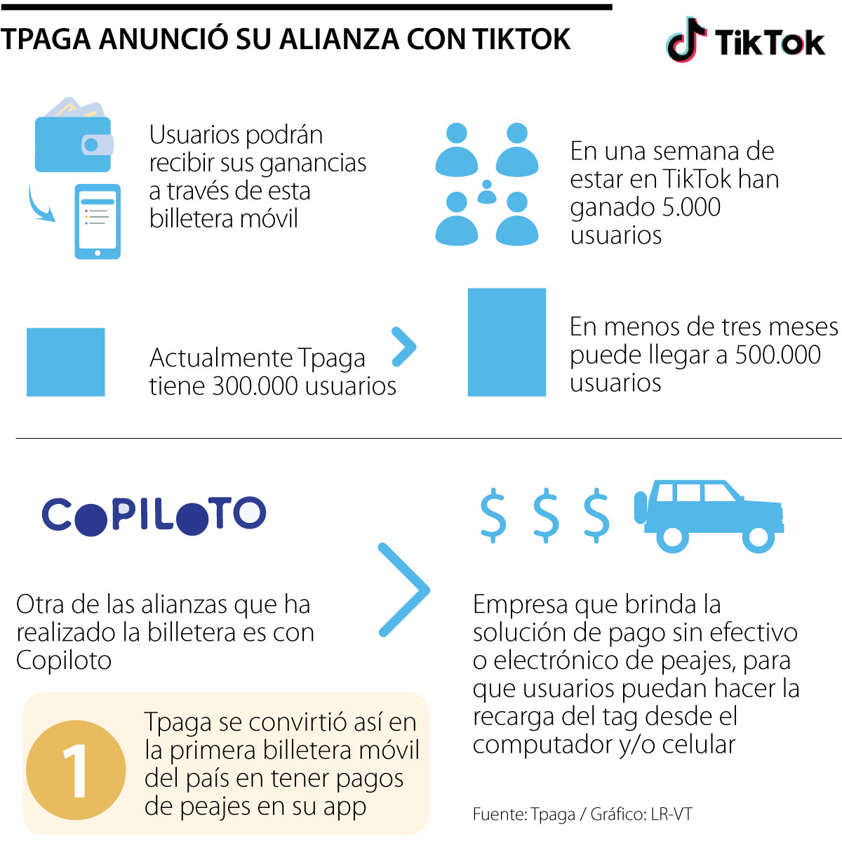 Pero este tipo de alianzas enfocadas en los usuarios no ha sido la única de la billetera móvil, pues a principio de año, Tpaga dio a conocer su convenio con Copiloto, empresa que brinda la solución de pago sin efectivo o pago electrónico de peajes a través de la recarga de un tag.