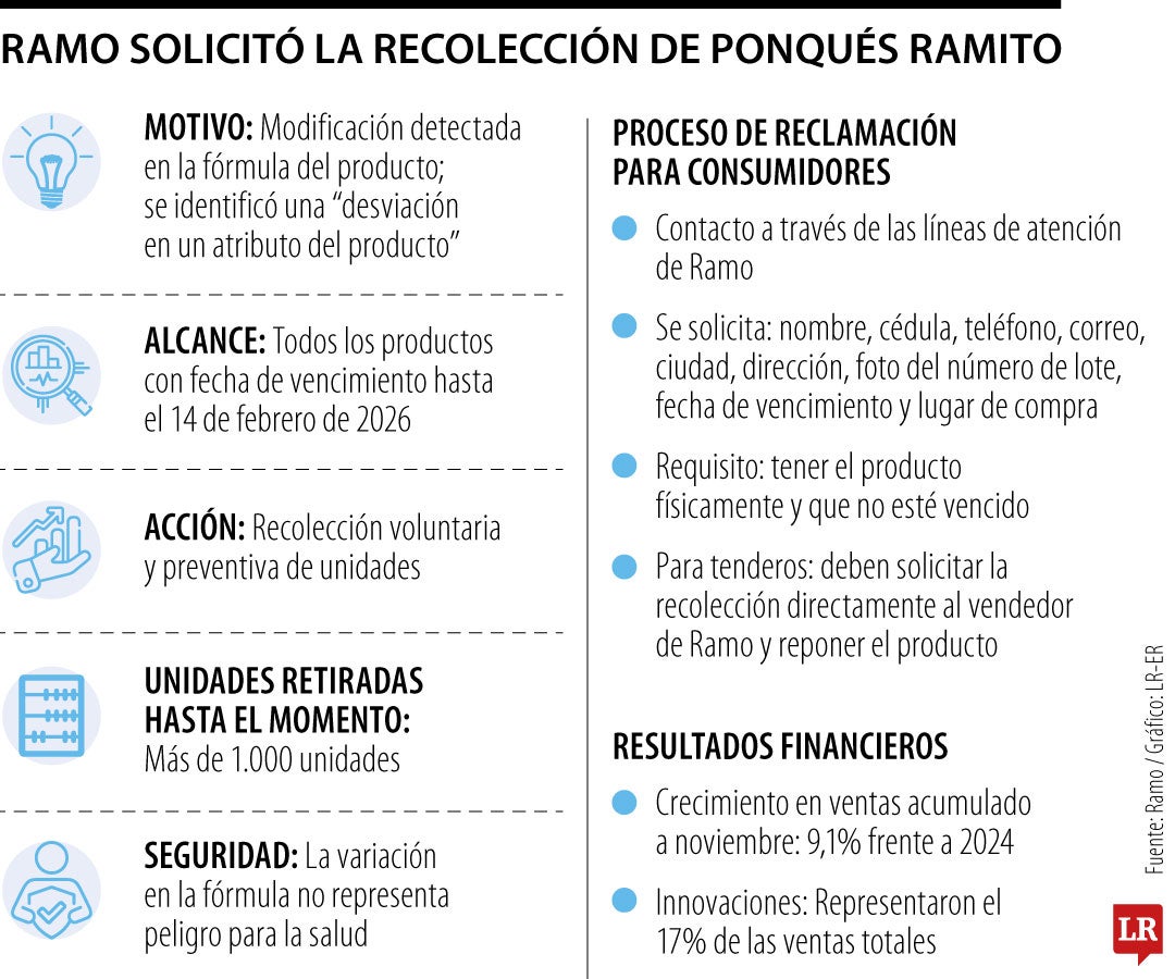Productos Ramo concluyó aclarando que esta variante en la fórmula de los ponques no representa ningún peligro para la salud de los compradores