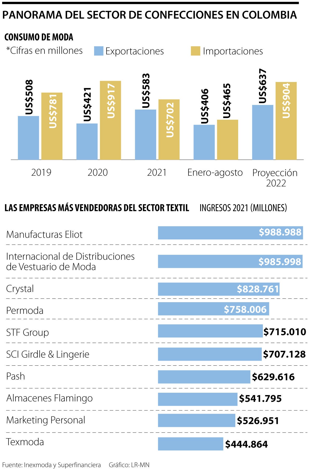 Internacional de Distribuciones de Vestuario de Moda ocupa la segunda posición, al obtener $985.000 millones a través de nombres en el sector como Pacifika y Carmel. En la tercera casilla se sitúa Crystal, con ingresos operacionales por $828.000 millones, siendo esta una empresa que cobija marcas como Gef, Punto Blanco, Baby Fresh, Galax, Parfois y Casino.
