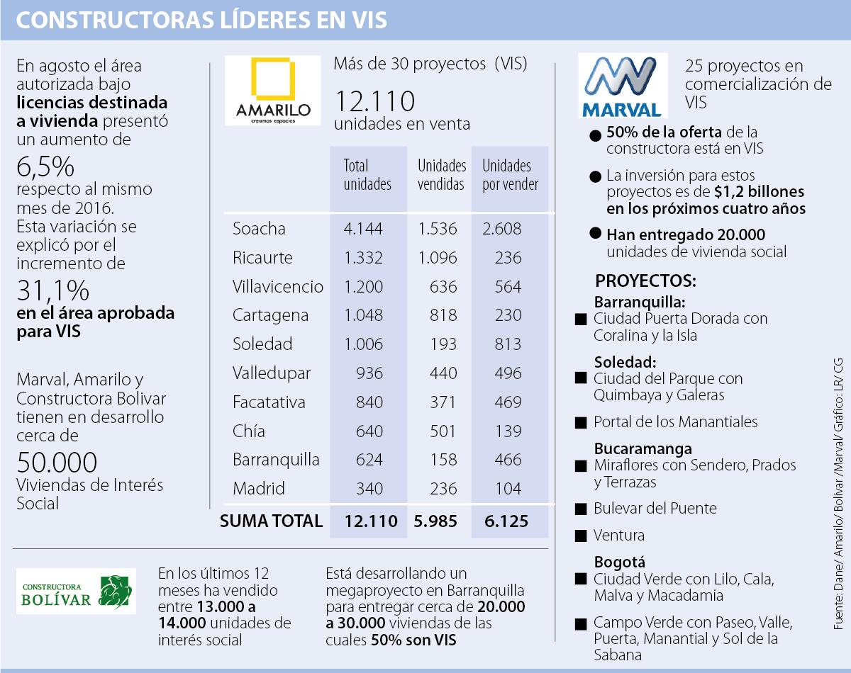 Los incentivos del Gobierno Nacional para la compra de Vivienda de Interés Social (VIS) y Vivienda de Interés Prioritario (VIP) ya dan los primeros resultados ahora que la oferta de las constructoras es cada vez mayor. Así lo revelan empresas como Marval, Amarilo y Bolívar que, aunque ya vienen trabajando desde años atrás en el segmento, dentro de su portafolio planear realizar más de 50.000 unidades VIS.