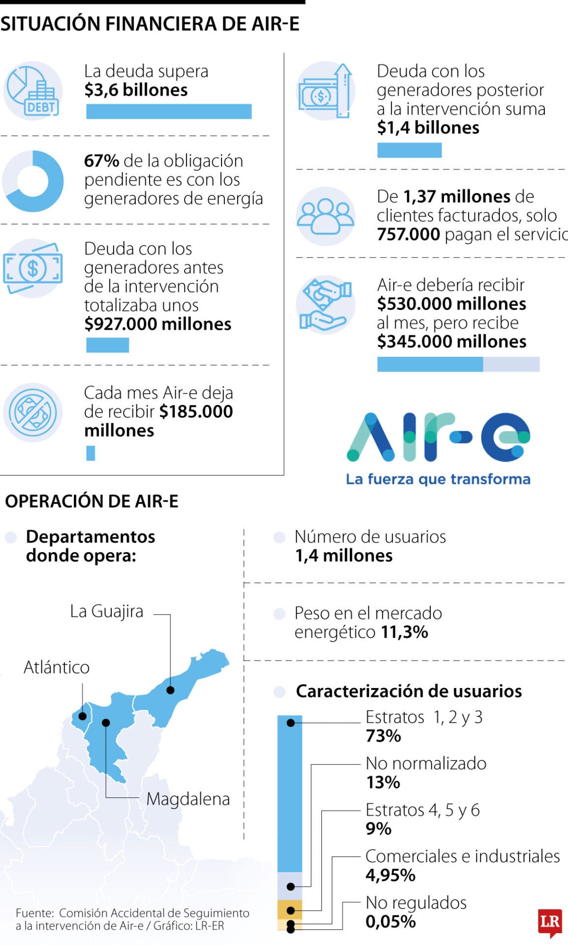 De acuerdo con la Comisión Accidental de Seguimiento a la intervención de Air-e, la deuda de la compañía está en $3,6 billones y 67% de ella está pendiente con las empresas generadoras. Cuando se hizo efectiva la intervención, los pasivos totalizaban $1,8 billones.