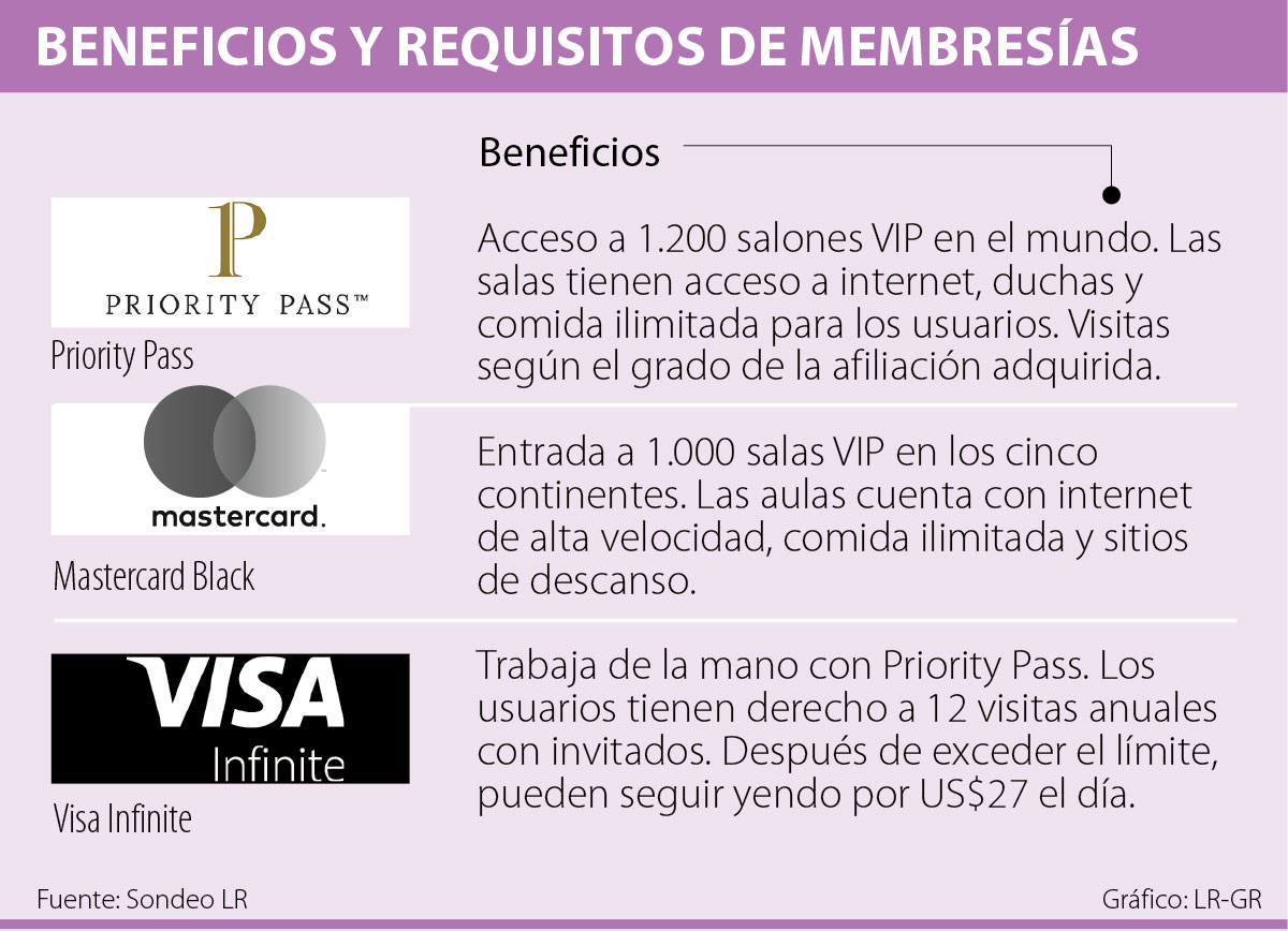Cada día son más las personas que tienen que viajar constantemente para cumplir con sus tareas laborales. Es por eso que las membresías en las salas VIP de los aeropuertos crecen en popularidad y se posicionan como una buena opción contra los vuelos con escala y las largas siestas en las salas de espera. Actualmente, las empresas más reconocidas que prestan este servicio son Priority Pass, Visa y Mastercard.
