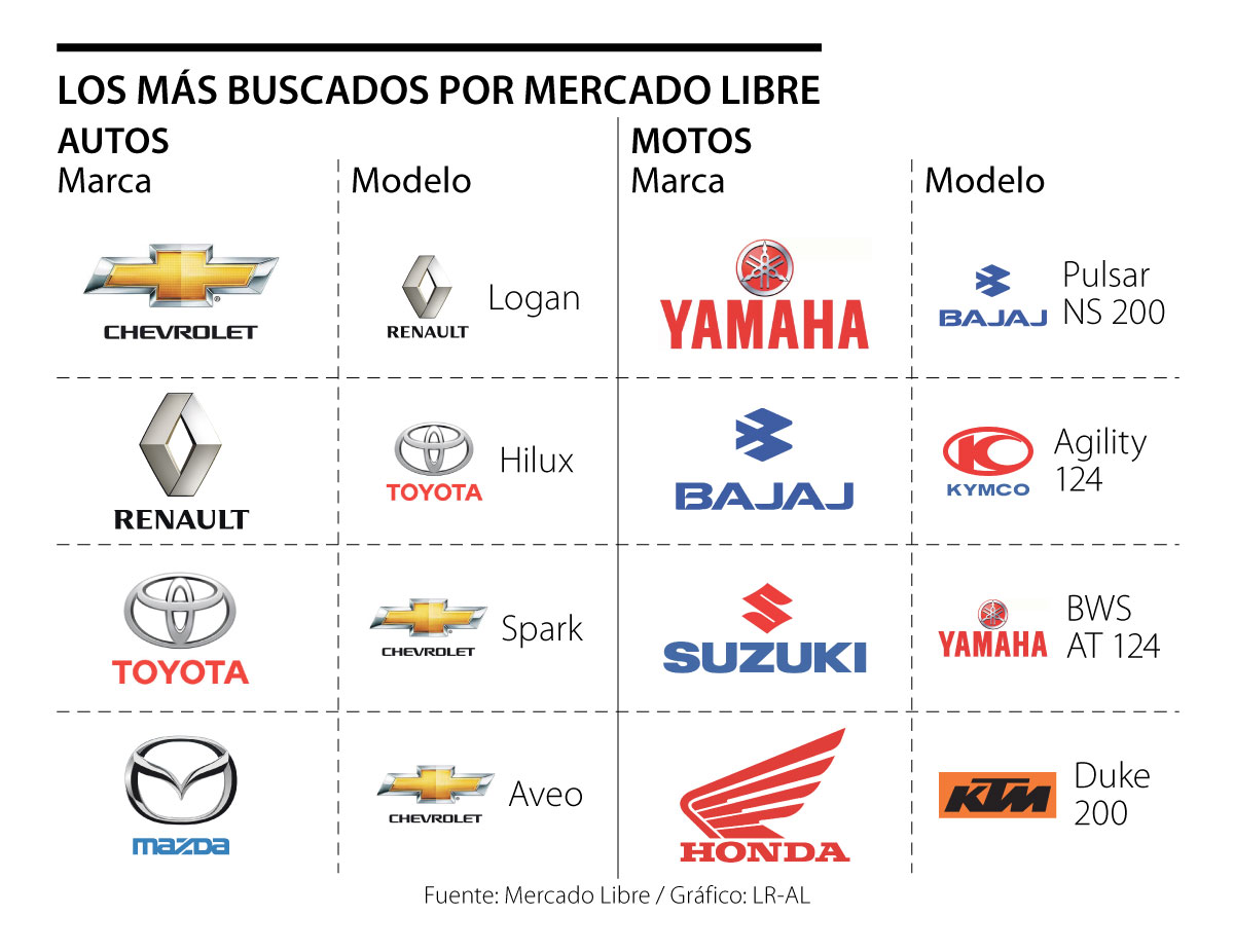 En otras cifras del mercado local, Philippe Fossaert, gerente de Mercado Libre Clasificados, explicó que han encontrado que “la motocicleta es hoy en día una alternativa de transporte para quienes buscan una herramienta de trabajo, un vehículo para transportarse en la ciudad o para viajar” y por eso sus venta son tan altas. Sobre los autos más vendidos por esta plataforma están el Logan, Hilux y el Spark; y en las motos la Pulsar NS 200 y la Agility 124.