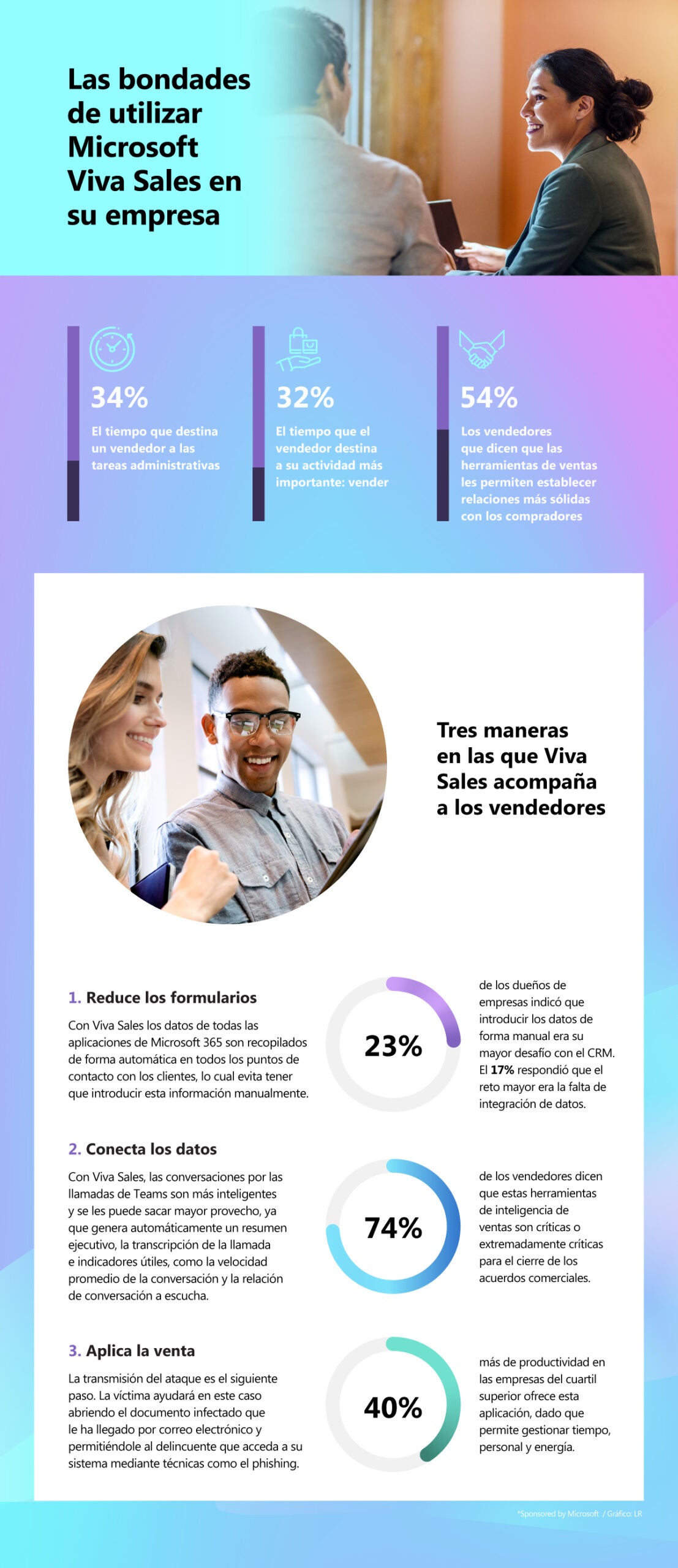 Con la aplicación Microsoft Viva Sales, los vendedores optimizan sus actividades administrativas y se concentran en cerrar acuerdos comerciales