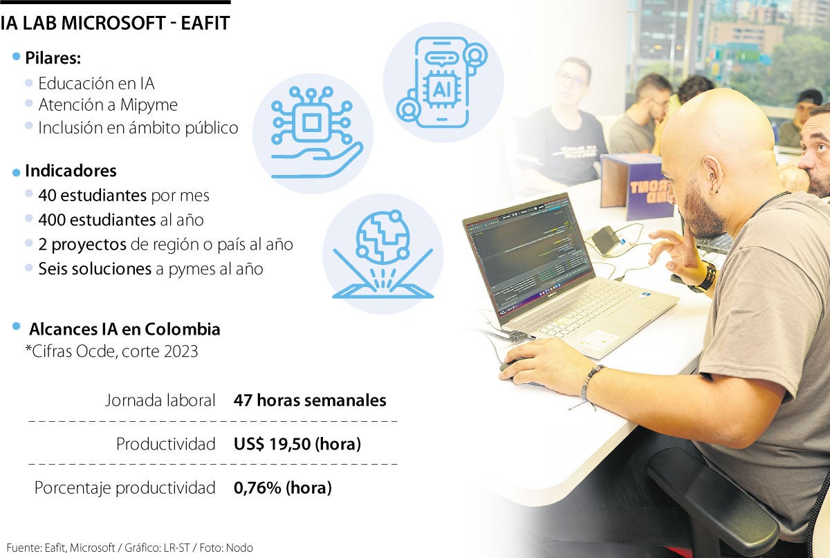 El segundo es que el laboratorio le va a brindar soluciones con inteligencia artificial a pequeñas y medianas empresas, involucrando a los estudiantes de semilleros, entre otros aliados, incluido Microsoft.