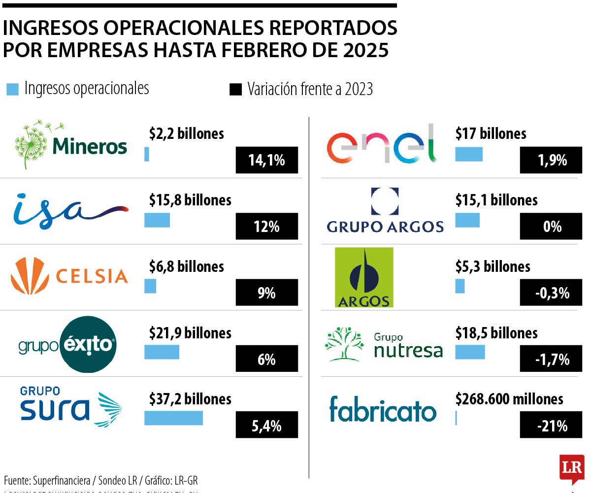 La segunda compañía en registrar mayores variaciones en 2023 fue ISA. Esta organización, que es filial de Ecopetrol, registró unos ingresos consolidados de $15,8 billones, registrando un alza de 12% frente a 2023; el ebitda también tuvo aumentos de 7% llegando a cifras de $9,7 billones.