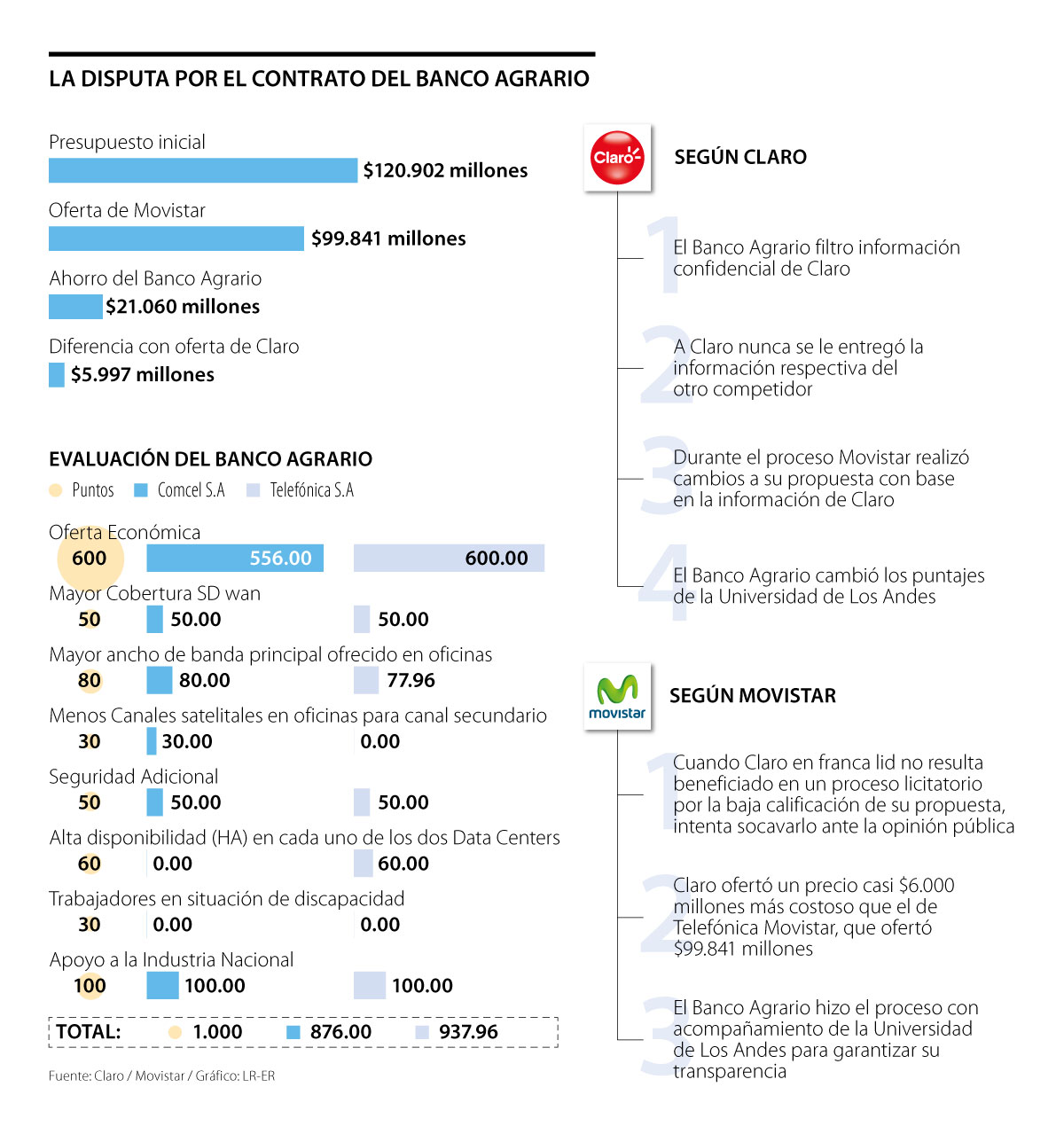 En menos de un año Movistar volvió a ganarle a Claro en un proceso de licitación pública, esta vez para prestar los servicios de TIC de conectividad y seguridad informática, requeridos para el funcionamiento y operación del Banco Agrario.