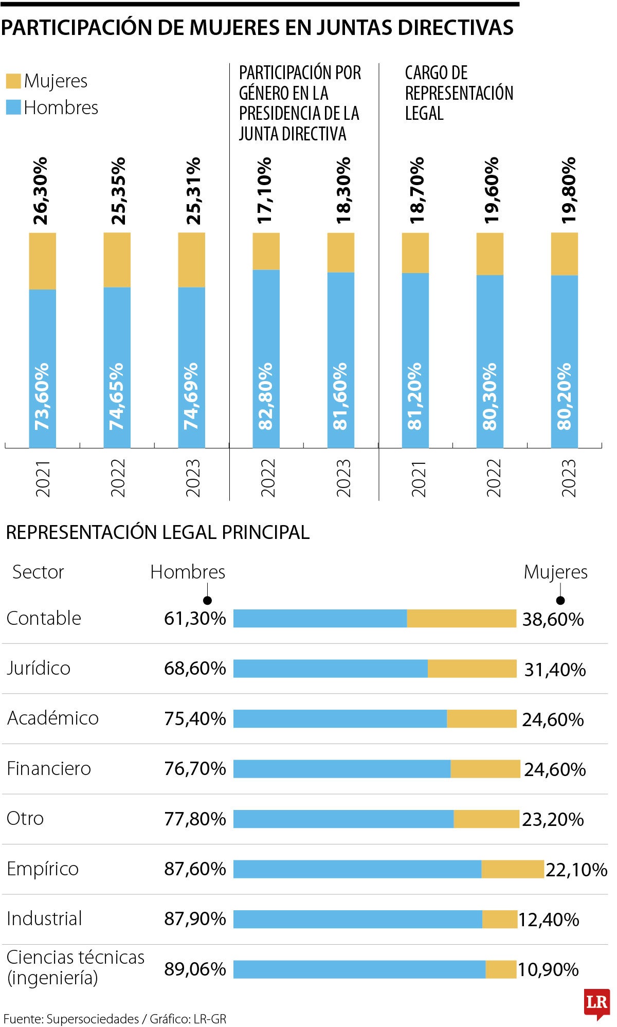 Las cifras indican que durante 2023, la participación de las mujeres en las juntas directivas de las empresas llegó a 25,3%, lo cual representó una ligera reducción comparado con 2022, año en el que dicha participación fue de 25,35%. En cuanto a los hombres, a lo largo de este año hubo una proporción de 74,69% en las juntas de las empresas.