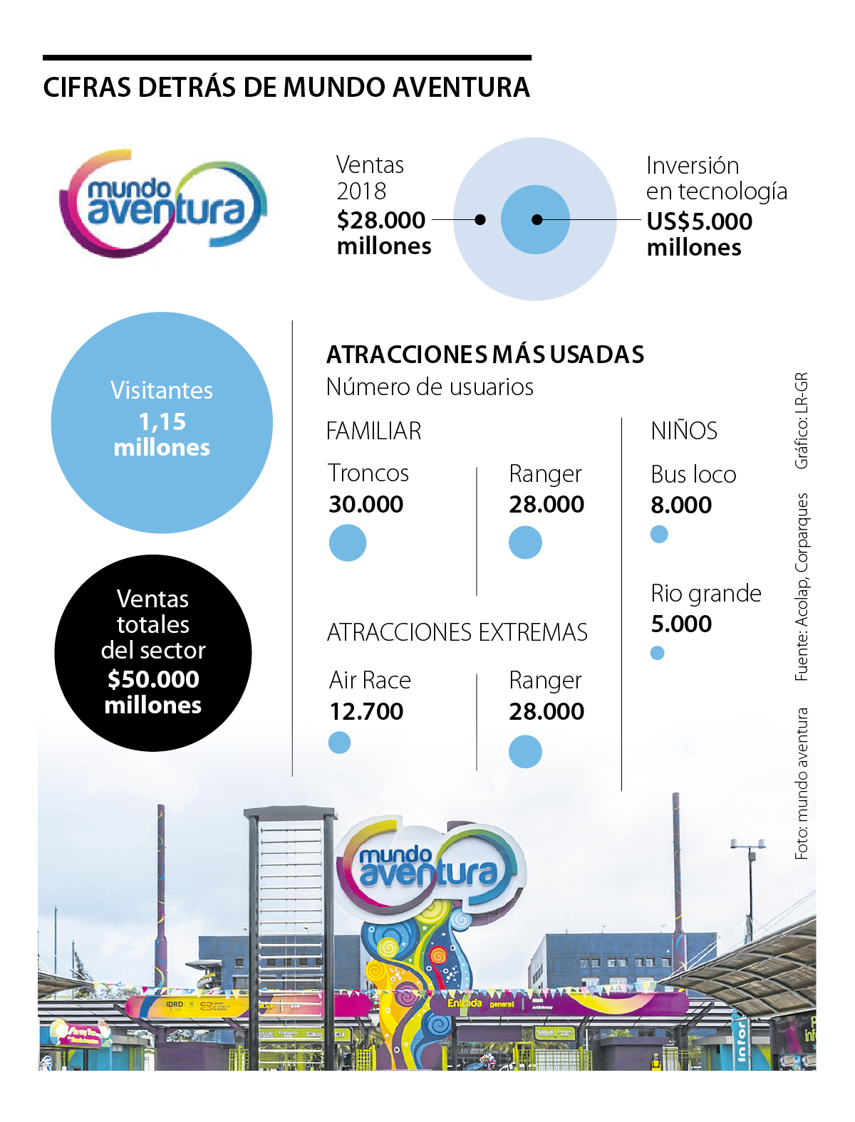Además, este ha sido un sector que también se ha transformado por el desarrollo de la tecnología, algo que no solo se ve en las nuevas atracciones que ofrecen, sino también en su operación, como es el caso de Mundo Aventura, que el año pasado fue visitado por 1,1 millones de personas, además de lograr ventas que ascienden a $28.000 millones.