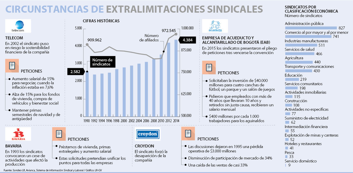 Y aunque frente a Avianca hay opiniones divididas, la aerolínea revivió casos de convenciones colectivas que enfrentaron a los sindicatos con empresas como Croydon, Telecom, Bavaria y el Acueducto de Bogotá.