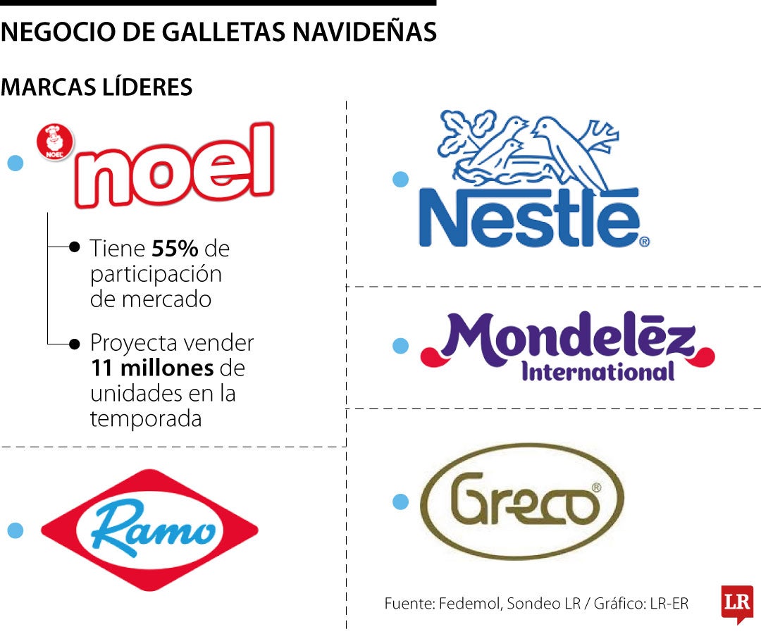 En estos días de novenas previo a la Nochebuena, además de buñuelos, natilla y vino, un producto que no puede faltar son las galletas navideñas. La Cámara Fedemol (Federación de Molineros de Trigo) de la Andi (Asociación Nacional de Empresarios ), explicó cómo está compuesto el segmento de galletería para navidad, en el que las empresas líderes son: Noel, Ramo, Nestlé, Mondelēz con su marca Oreo, Colombina, y Greco.