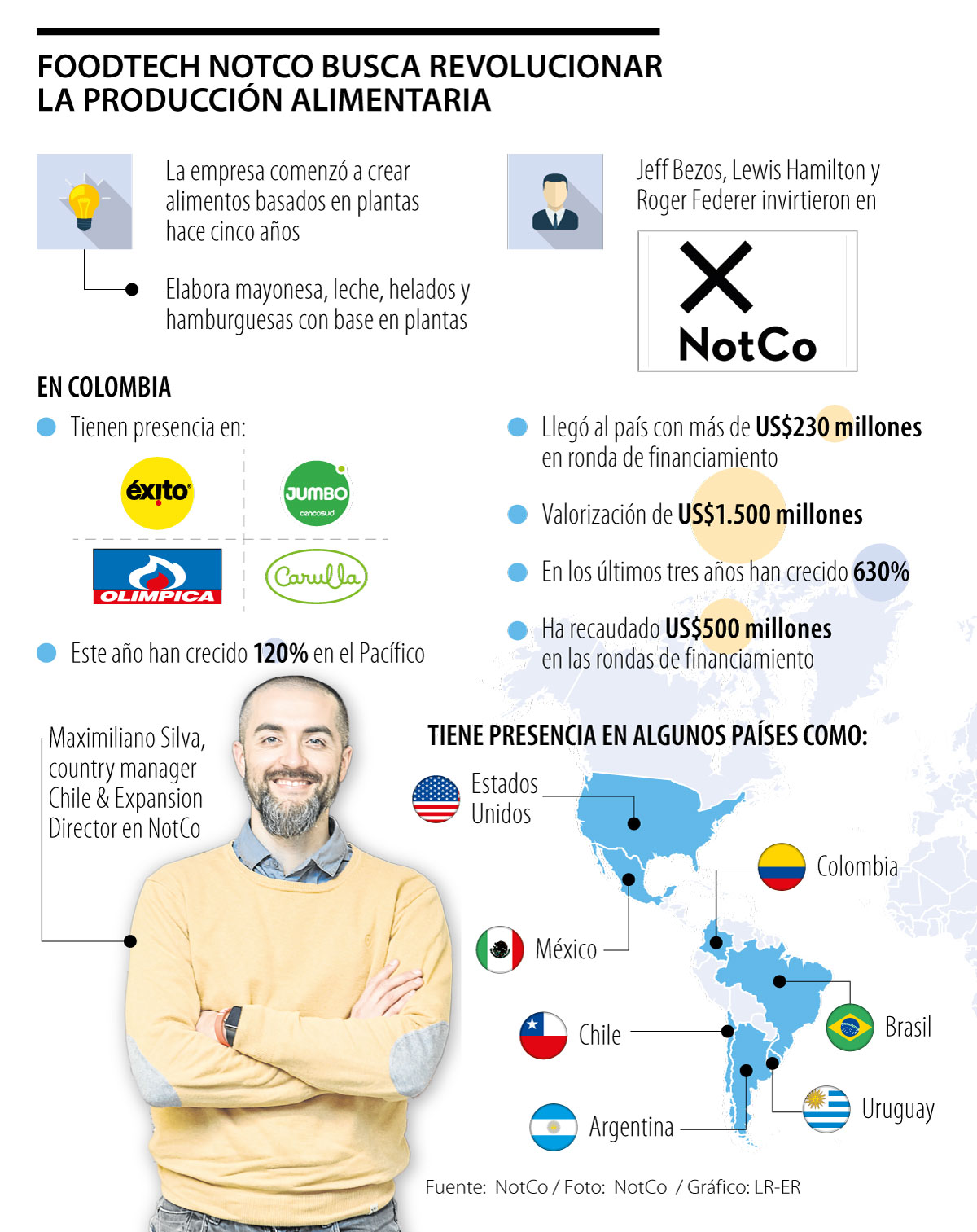La empresa, apoyada por Jeff Bezos, Lewis Hamilton y Roger Federer en sus fondos de inversión, llegó a Colombia con más de US$230 millones en ronda de financiamiento en julio de este año, y ya tiene presencia en las tiendas de Éxito, Jumbo, Olímpica y Carulla y en restaurantes como Home Burgers.