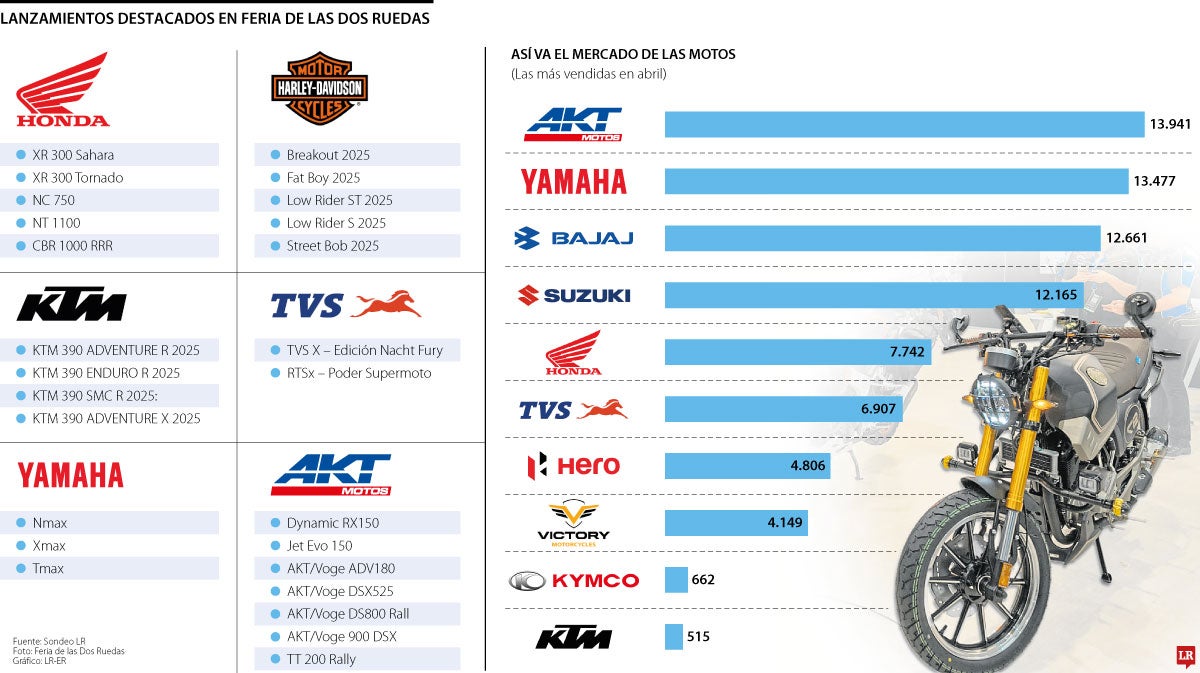 Más de 12 marcas anunciaron 14 lanzamientos. Entre ellas, AKT, Honda y Harley fueron las casas con más anuncios para robustecer su portafolio
