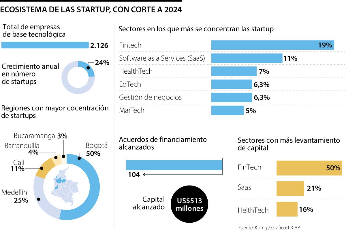 Según el informe Colombia Tech Report 2024, elaborado por Kpmg, el país ya cuenta con un ecosistema de 2.126 empresas que ofrecen soluciones y servicios con base en innovaciones tecnológicas, cifra que representa un incremento de 24% respecto a 2023.