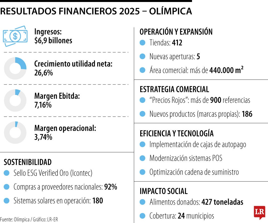 Olímpica reportó ingresos por $6,9 billones en 2025 y un crecimiento de 26,6% en su utilidad neta, superando la inflación anual de 5,1%.