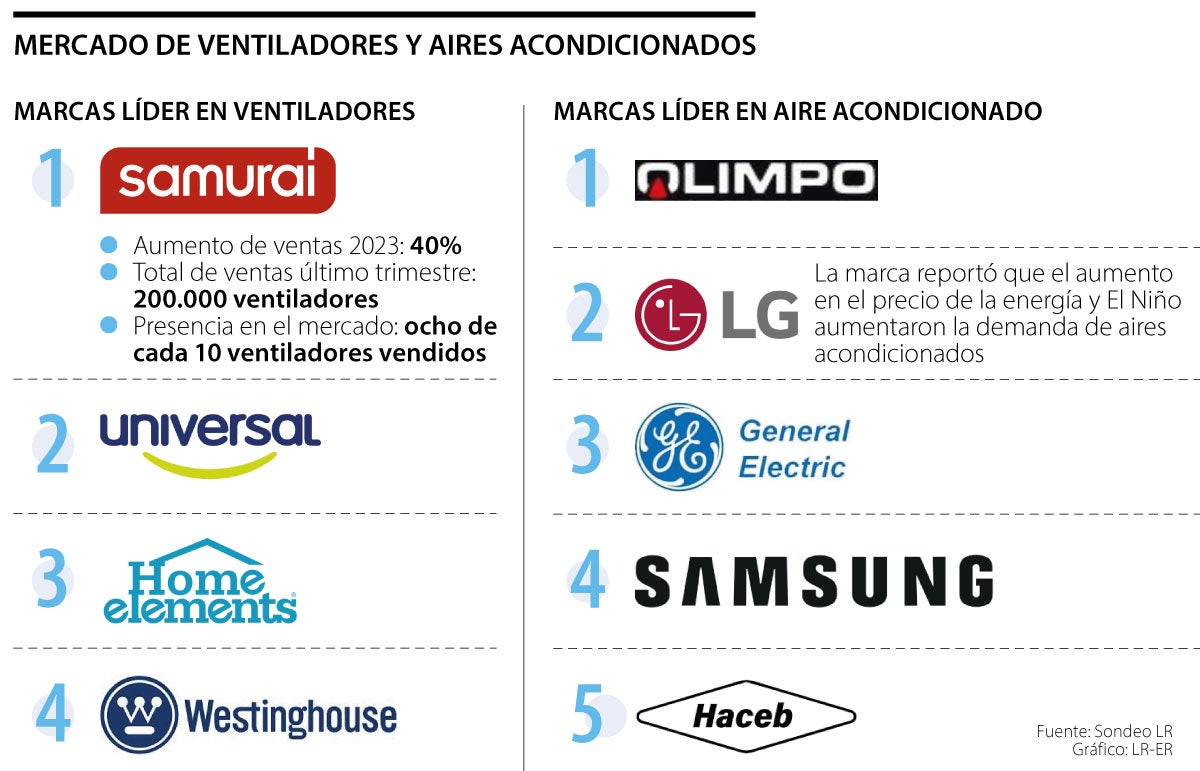 Por otro lado, en la categoría de aires acondicionados, Euromonitor International resaltó que las marcas líderes del sector en el país son Olimpo, LG, GE, Samsung y Haceb.