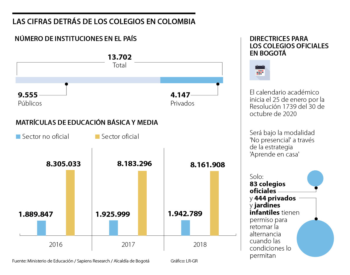 En el caso de Bogotá, se aplazó el regreso presencial a los colegios oficiales, que se tenía previsto para el 25 de enero, para mantenerse en su estrategia, ‘Aprende en casa’. La alcaldesa Claudia López, también aclaró que las instituciones privadas tampoco podrán volver al aula, lo que va en contra del sentimiento de los padres.