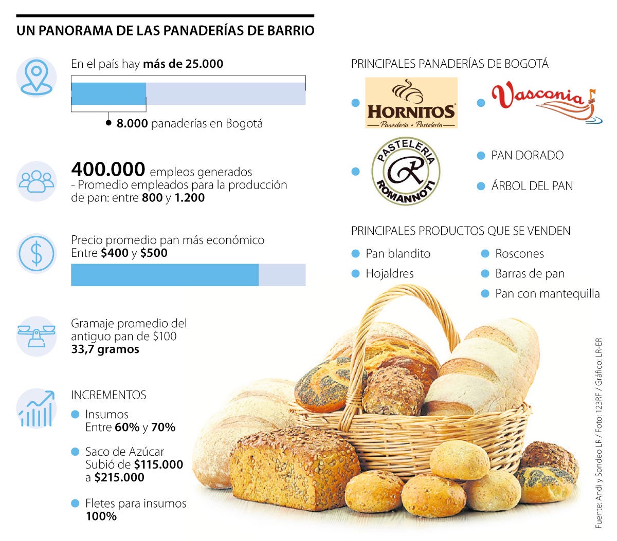 El panorama en los diferentes lugares de la capital no es muy diferente, desde cafeterías de grandes supermercados hasta productoras de panes artesanales han visto cómo los costos de producción empiezan a generar dificultades en sus estándares de gramaje. El pan más barato ahora es más caro y más pequeño, una constante en las 8.000 panaderías registradas en Bogotá.